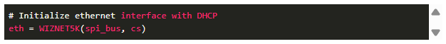 使用adafruit.wiznet5k提供的WIZNET5K功能將它們組合為以太網(wǎng)接口。查看Github頁面了解更多信息。