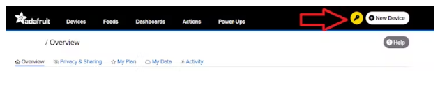 找到你的名字和令牌去Adafruit IO和按下鍵選項(xiàng)卡在頁面的右上角。