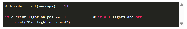 如果current_light_on_pos中的值為-1,則表示所有的燈都關(guān)閉了。因此,我們需要通知用戶,我們不能在終端關(guān)閉更多的燈。