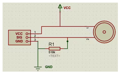 我們將使用的模塊由FSR傳感器和與傳感器串聯(lián)的510 kΩ電阻組成。該電路由5 VDC供電,電路的輸出信號(hào)電壓從分壓器中移除,分壓器由我們將使用的模塊由FSR傳感器和與傳感器串聯(lián)的510 kΩ電阻組成。電路供電5vdc,電路的輸出信號(hào)電壓從分壓器上取下,由模塊形成的輸出信號(hào)電壓很低,輸出信號(hào)電壓很低。相反,當(dāng)傳感器上的壓力增加時(shí),傳感器的電阻會(huì)下降,從而使模塊輸出信號(hào)上的電壓增加。在我們的項(xiàng)目中,我們將模塊的輸出信號(hào)連接到AZ微控制器的模擬輸入,并在串行監(jiān)視器上顯示測(cè)量值。下圖是AZ-Delivery-Data表中的模塊電路: