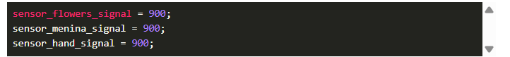 有了這些行,塊的編程就完成了。現(xiàn)在讓我們從持續(xù)執(zhí)行的Loop()開始。它確定其中一個(gè)圖形是否被移動(dòng)或從其位置移除。我們將描述花中的花的代碼。menina和hand的圖形代碼是相同的,只是每個(gè)圖形變量的值發(fā)生了變化。menina的sensor_menina_signal <1200, hand sensor_hand_signal <1000。