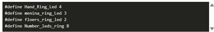 對(duì)于每個(gè)WS2812B LED環(huán)的操作,必須為使用的每個(gè)環(huán)創(chuàng)建Neopixel庫(kù)的對(duì)象。一個(gè)環(huán)的led的各自數(shù)量寫在這個(gè)對(duì)象的參數(shù)中(我們有這個(gè)number_led_ring的變量),每個(gè)環(huán)連接的微控制器的引腳(為此我們有變量,例如floers_ring_led),以及每個(gè)環(huán)的屬性。它們是三色led (Neo_grb),工作頻率為800 kHz (Neo_khz800)。