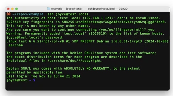 如果系統(tǒng)提示“您確定要繼續(xù)連接嗎?”,請輸入“yes”并按回車鍵。然后,輸入用戶名的密碼。您應(yīng)該看到一條登錄消息和一個命令提示符。