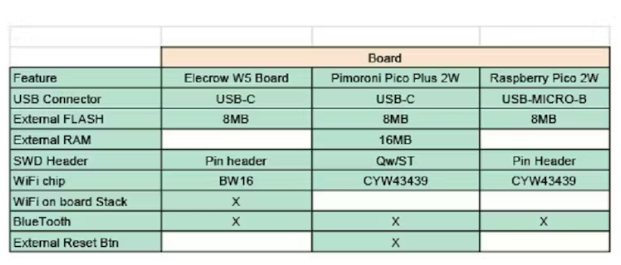 Pico 2W, Pimoroni Pico Plus 2W和Elecrow RP3250 Pico W5板之間的區(qū)別是什么?