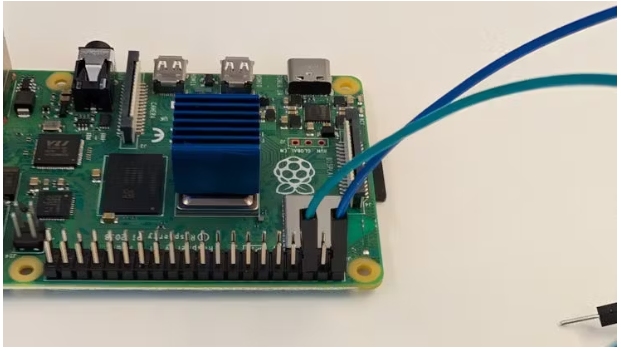 4. 將跳線插入Pi上的GPIO GND(物理引腳6),并將該線連接到面包板的負軌,該負軌將其連接到GND。