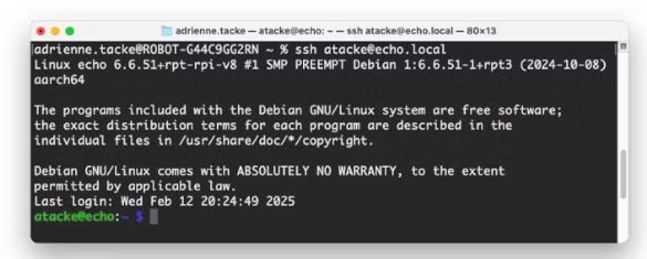 2. 啟動Pi后,使用SSH連接到它。從命令行終端窗口輸入以下命令。<>中的文本(包括<和>符號本身)應該替換為您在設置Pi時配置的用戶名和主機名。