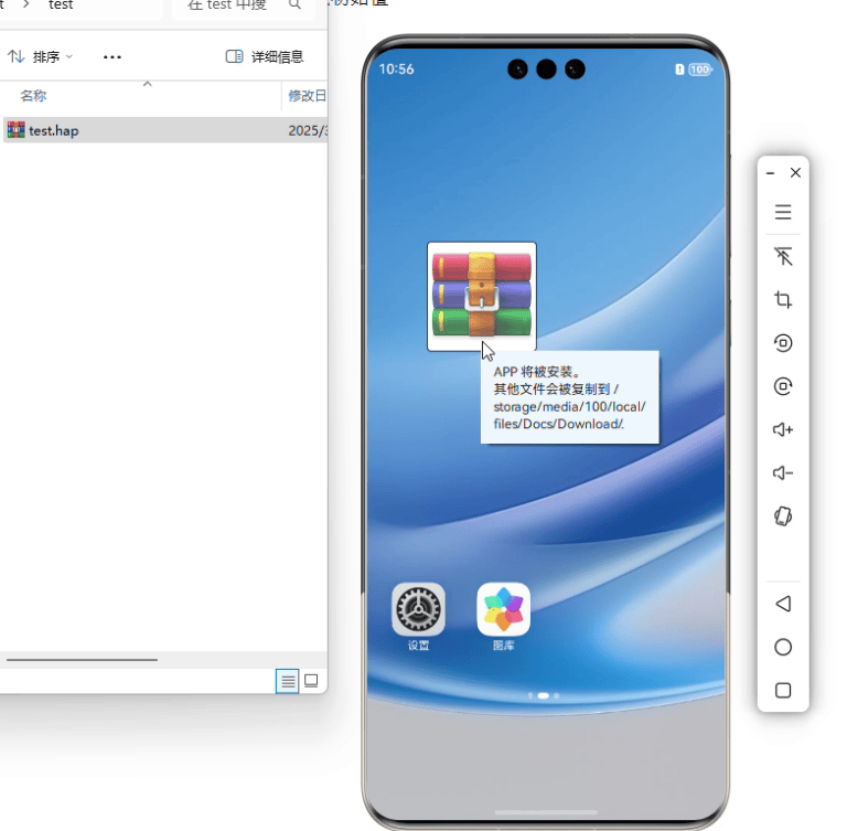 直接拖拽hap文件到模擬器界面即可完成安裝