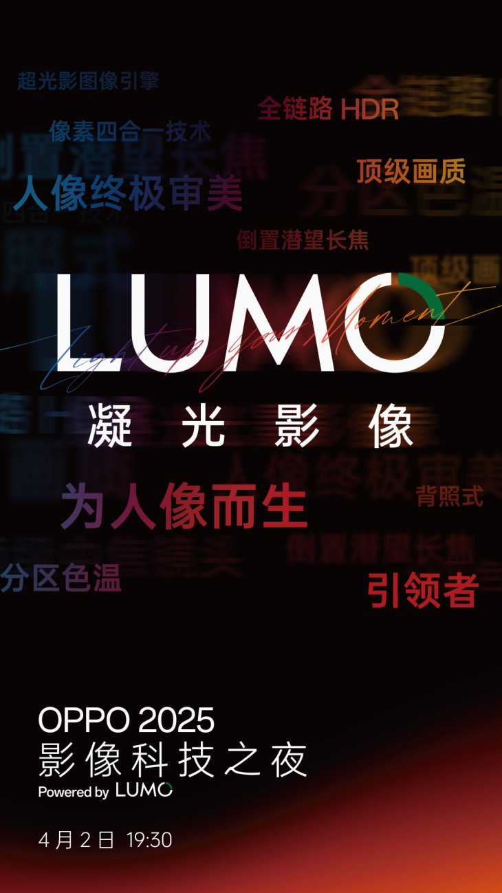 OPPO官方今日正式宣布,將于 4月2日舉辦OPPO 2025 影像科技之夜,并將發(fā)布OPPO首個影像品牌 LUMO 凝光影像,開啟技術(shù)與審美深度融合、光學(xué)與算法相互驅(qū)動的移動影像新時代。通過強大光學(xué)設(shè)計與先進計算能力,LUMO 凝光影像旨在打造出拍人最好的移動影像系統(tǒng)。即將發(fā)布的 Find X8 Ultra 將全球首發(fā)搭載 OPPO LUMO 凝光影像。