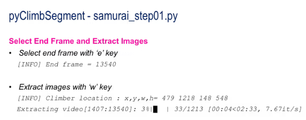 “samurai_step01.py”腳本可用于從輸入視頻中提取圖像。它的用法如下: