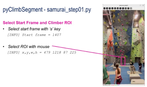 第一步是導(dǎo)航到一個(gè)幀,它將成為提取圖像的開(kāi)始幀,用‘s’鍵選擇它,然后使用鼠標(biāo)選擇要跟蹤的對(duì)象的ROI。在我的用例中,這是一個(gè)攀爬器,但您可以選擇任何對(duì)象。