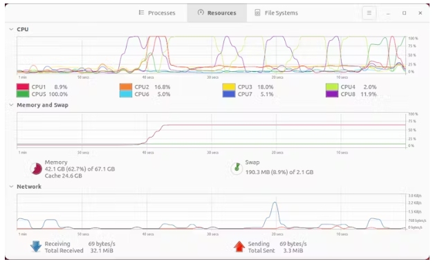 下面的屏幕截圖說(shuō)明了SAMURAI如何為一個(gè)包含3000張1920x1080大小的圖像的用例分配64GB CPU內(nèi)存的60%。