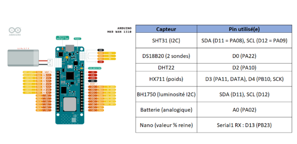 我們的系統(tǒng)使用溫度和濕度傳感器的組合,以確保準(zhǔn)確可靠地監(jiān)測(cè)蜂巢的環(huán)境。在蜂巢內(nèi)部,我們有兩個(gè)DS18B20傳感器專門用于測(cè)量溫度,一個(gè)DHT22傳感器提供溫度和濕度數(shù)據(jù)。為了保護(hù)DHT22免受損壞,它將被封裝在一個(gè)定制的3d打印外殼中,確保耐用性,同時(shí)保持準(zhǔn)確的讀數(shù)。這種冗余提高了可靠性,即使一個(gè)傳感器出現(xiàn)故障,系統(tǒng)也能保持正常工作。對(duì)于外部條件,我們使用SHT31傳感器,測(cè)量蜂箱外的溫度和濕度,為影響蜂群的環(huán)境因素提供有價(jià)值的見解。