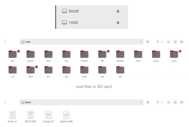 SD卡有兩個(gè)分區(qū),一個(gè)用于根文件,一個(gè)用于引導(dǎo)文件,看起來像,