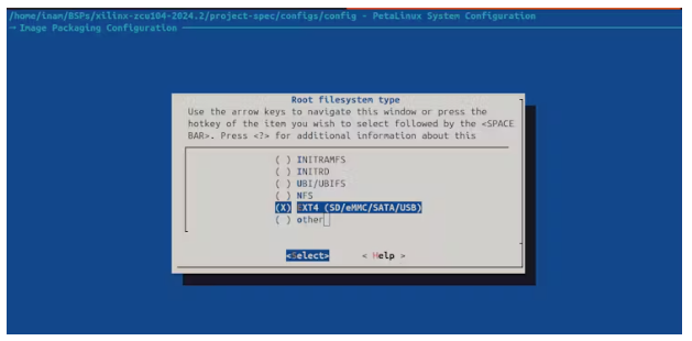 然后轉(zhuǎn)到Image Packaging Configuration,選擇EXT4 (SD/eMMC/USB)。