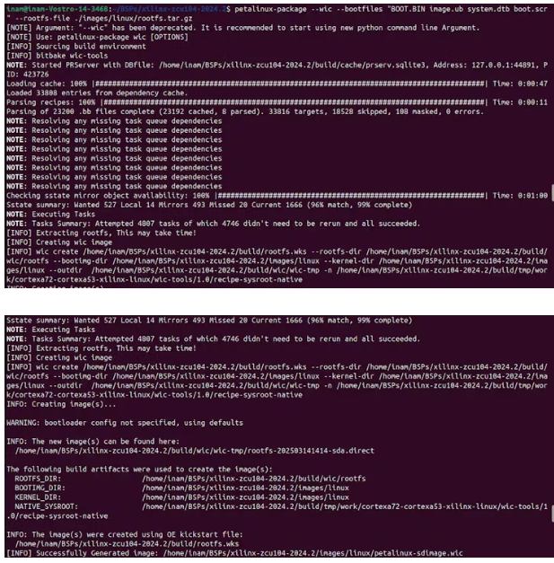 PetaLinux將花費(fèi)幾分鐘的時(shí)間來生成wic映像,通常最終大小略大于6GB,并且需要至少8GB的SD卡。