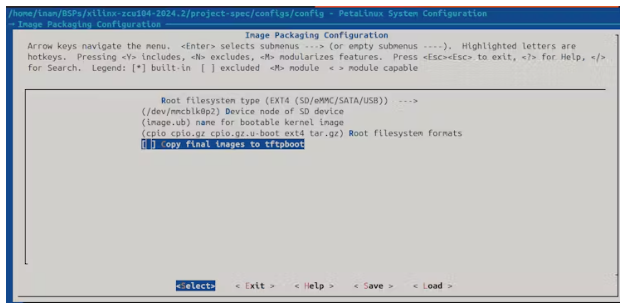 我也沒有為我的ZCU104使用TFTPboot(即-根文件系統(tǒng)是從網(wǎng)絡(luò)位置加載的,而不是像SD卡一樣的本地存儲(chǔ)),我發(fā)現(xiàn)從PetaLinux版本2024.1開始,如果TFTPboot在PetaLinux項(xiàng)目中沒有完全配置,那么它將導(dǎo)致項(xiàng)目構(gòu)建失敗。