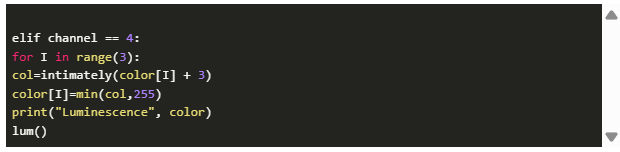 信號LED在通道0處變暗。在減少選項卡中,當前的顏色代碼為realciintermediated,代碼為[0.0.0]。這里,在increate()中,顏色代碼被恢復并發(fā)送到環(huán)。旗子說:讓我們把它放回去。
