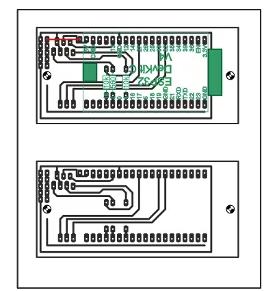 對于使用的控制器板ESP32 Dev Kit C V4,需要兩個面包板來開發(fā)電路,它們通過電流軌放在一起。這是為跳線獲得足夠自由接觸點的唯一方法。
