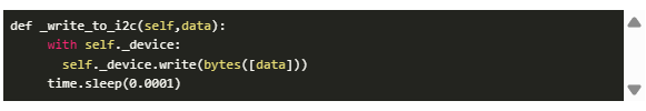 接下來(lái),我用更長(zhǎng)的延遲和不同的方法更改了_write_to_i2c函數(shù),以便將數(shù)據(jù)寫入I2C設(shè)備,因?yàn)槲覀儾辉偈褂胊dafruit總線設(shè)備。我參考了I2C教程頁(yè)面將字節(jié)數(shù)據(jù)寫入地址。