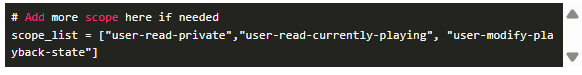 要顯示我們的名稱,顯示當(dāng)前歌曲名稱,并修改Spotify播放器,我們將需要使用以下作用域。