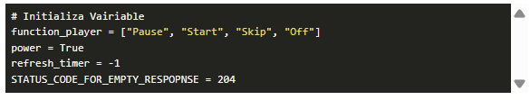 接下來(lái),我們?cè)O(shè)置要打印到LCD屏幕的可用函數(shù)、一個(gè)電源變量和一個(gè)刷新計(jì)時(shí)器變量,它們類似于發(fā)送請(qǐng)求和刷新LCD屏幕的倒計(jì)時(shí)計(jì)時(shí)器。另外,設(shè)置一個(gè)常數(shù)204,它表示一個(gè)空響應(yīng)的狀態(tài)碼。