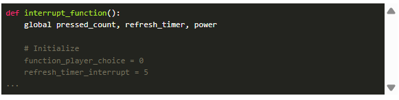 首先,我將power變量、操縱桿模塊按鈕的pressed_count變量和refresh_timer變量設(shè)置為全局變量,因?yàn)檫@些值將在此函數(shù)中更改。