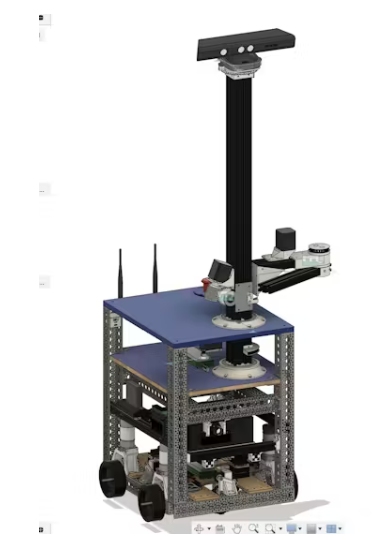 機器人的底座包括驅(qū)動底座和計算硬件。驅(qū)動基礎(chǔ)非常簡單——一些舊的直流電機通過一些3D打印的錐齒輪驅(qū)動Mecanum車輪?;厣系囊磺卸加梢粋€Teensy 4.1微控制器控制。這可以控制馬達以正確的速度運行,使機器人移動到它想去的地方。