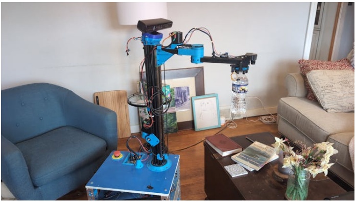 (還沒有全部連接好)我想讓機器人做的第一件事是給家人或客人取水送水。我決定從塑料水瓶開始,這樣我就不會不小心把水灑在我的大項目上。最終,我想在手臂上添加更多的附件,以獲得更多的功能。