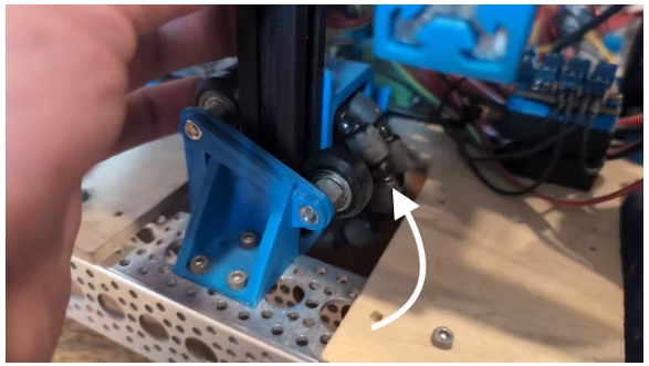 這個版本的機器人有一個特別的添加,我稱之為“奧多姆之輪”。這些都是小全能輪,在軸上自由旋轉(zhuǎn),用磁性編碼器測量。整個裝配在一個線性滑塊上,因此輪子可以很容易地上下移動,而不會受到大型重型機器人的影響。