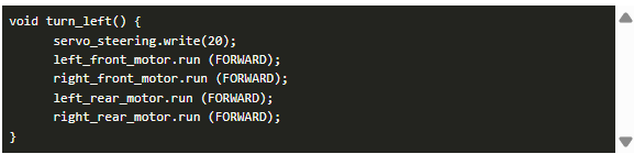 相反,如果向左的距離確定為20度,則執(zhí)行方法turn_left(),以便車輛在該方向上轉(zhuǎn)彎而不停車。