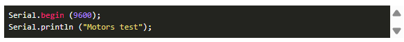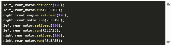 現(xiàn)在我們配置電機的轉(zhuǎn)速以及微控制器初始化或復(fù)位時電機的初始狀態(tài)。轉(zhuǎn)速是用指令motor_name.setSpeed(120)設(shè)置為最大速度的一半,電機必須停止,后者是用指令motor_name.run(RELEASE)配置完成的。