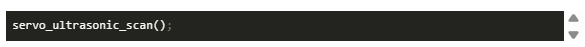 最后兩個方法接收setup()方法的調(diào)用,因此它們只執(zhí)行一次以檢查伺服電機是否正常工作。第一個檢查前超聲波傳感器的伺服電機。定位度與servo_ultrasonic_scan()方法相同,但我們在位置之間編程了500毫秒的延遲。