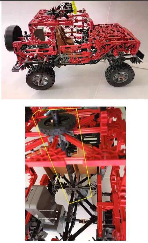 這輛車的手動系統(tǒng)在車頂上有一個輪子,用來移動齒輪。這些齒輪帶動到汽車前部的軸來移動方向盤。從圖中可以看出,這個系統(tǒng)非常麻煩,而且還是人工操作的。