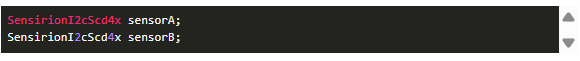 我們要連接的兩個SCD41傳感器的I2C地址為0x62,無法更改。因此,為了與來自微控制器的兩個傳感器通信,我們將為每個傳感器使用單獨的I2C總線。每個I2C總線需要一個引腳用于SDA線,一個引腳用于SCL線。第一個傳感器將連接到標準I2C引腳。對于第二個I2C總線,我們需要定義兩個要使用的GPIO引腳并將第二個傳感器連接到這些引腳。在軟件方面,我們使用標準的Wire庫。對于連接到默認引腳的第一個傳感器,您可以使用預配置的“Wire”實例。對于第二個傳感器,我們需要配置第二個實例“Wire1”,以使用所選引腳。作為最后一步,我們將創(chuàng)建傳感器驅動程序類的兩個實例,并使用標準I2C總線初始化一個實例,使用自定義I2C總線初始化另一個實例。