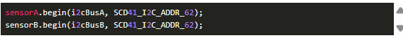 然后,通過(guò)I2C總線向傳感器發(fā)送命令的代碼需要知道哪個(gè)傳感器使用哪個(gè)總線。因此,您需要相應(yīng)地配置傳感器實(shí)例。首先,為每個(gè)傳感器創(chuàng)建一個(gè)驅(qū)動(dòng)程序?qū)嵗?。它們的作用域?yīng)該是全局的,這樣就可以從‘ setup() ’和‘ loop() ’中引用它們。