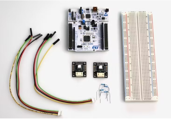 在本例中,我們使用支持多個(gè)I2C總線的STM32 Nucleo 64 F401RE板。作為傳感器,我們有兩個(gè)盛思銳SCD41二氧化碳傳感器評(píng)估板。您可以使用任意兩個(gè)傳感器,無(wú)論它們是相同的產(chǎn)品還是具有相同I2C地址的不同傳感器。評(píng)估板很方便,因?yàn)槲覀兛梢詫⑺鼈兣c評(píng)估套件中包含的電纜連接起來(lái),允許我們?cè)诓缓附用姘宓那闆r下連接所有東西。