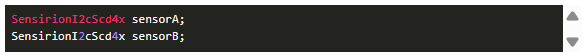 我們要連接的兩個(gè)SCD41傳感器的I2C地址為0x62,無(wú)法更改。因此,為了從微控制器與兩個(gè)傳感器通信,我們將為每個(gè)傳感器使用單獨(dú)的I2C總線。每個(gè)I2C總線需要一個(gè)引腳用于SDA線,一個(gè)引腳用于SCL線。在軟件方面,我們需要初始化每個(gè)I2C總線的“TwoWire”實(shí)例并配置引腳?!癟woWire”是標(biāo)準(zhǔn)Wire庫(kù)的一部分。作為最后一步,我們將創(chuàng)建傳感器驅(qū)動(dòng)程序類的兩個(gè)實(shí)例,并使用標(biāo)準(zhǔn)I2C總線初始化一個(gè)實(shí)例,使用自定義I2C總線初始化另一個(gè)實(shí)例。