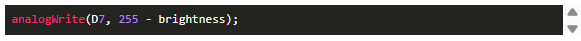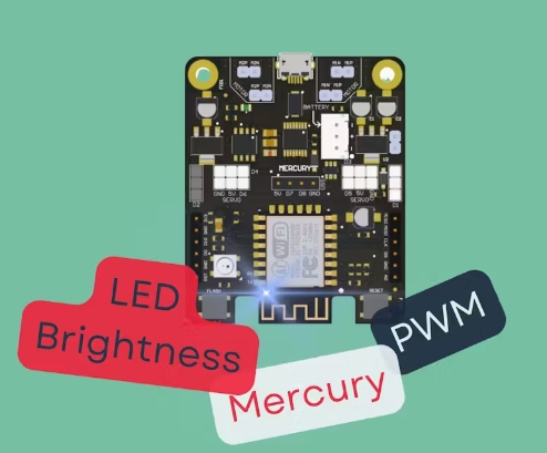 analogWrite()函數(shù)接受兩個輸入:引腳和占空比。在Mercury Board上,內(nèi)置LED連接到引腳D7 (GPIO 2)。通過將占空比設(shè)置為0到255之間的值[0 = 0%占空比,255 = 100%占空比],我們可以平滑地調(diào)節(jié)LED的亮度。