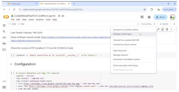 現(xiàn)在我們可以打開Colab Notebook,并連接到運行時。如果你只是嘗試,選擇CPU,因為它是免費的,有最長的運行時間。GPU處理更快,但可能需要購買計算單元以在高峰時間運行。