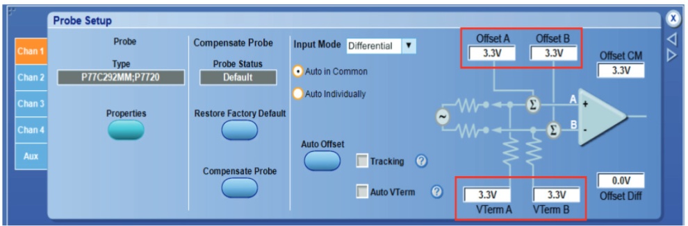 泰克示波器及探棒能夠提供標(biāo)準(zhǔn)的3.3V端接電壓,滿足協(xié)會(huì)要求的一致性測(cè)試。在用戶自定義模式下,還可以提供可調(diào)的端接電壓,例如設(shè)置3.0V的端接電壓,用于驗(yàn)證源端芯片在端接電壓變化時(shí)的情況。