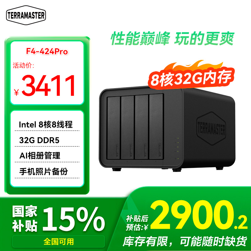 隨著數(shù)字化轉型浪潮席卷各行各業(yè),數(shù)據(jù)存儲與安全需求迎來爆發(fā)式增長。為助力企業(yè)及個人用戶高效應對數(shù)據(jù)挑戰(zhàn),鐵威馬(TerraMaster)攜手國家專項補貼政策,正式推出全國國家補貼活動。其中,旗艦級F4-424Pro(16G/32G)以至高直降15%的空前力度,成為本次活動的“C位爆款”,為消費者解鎖專業(yè)級網絡存儲的極致性價比。機會難得,不要錯過!