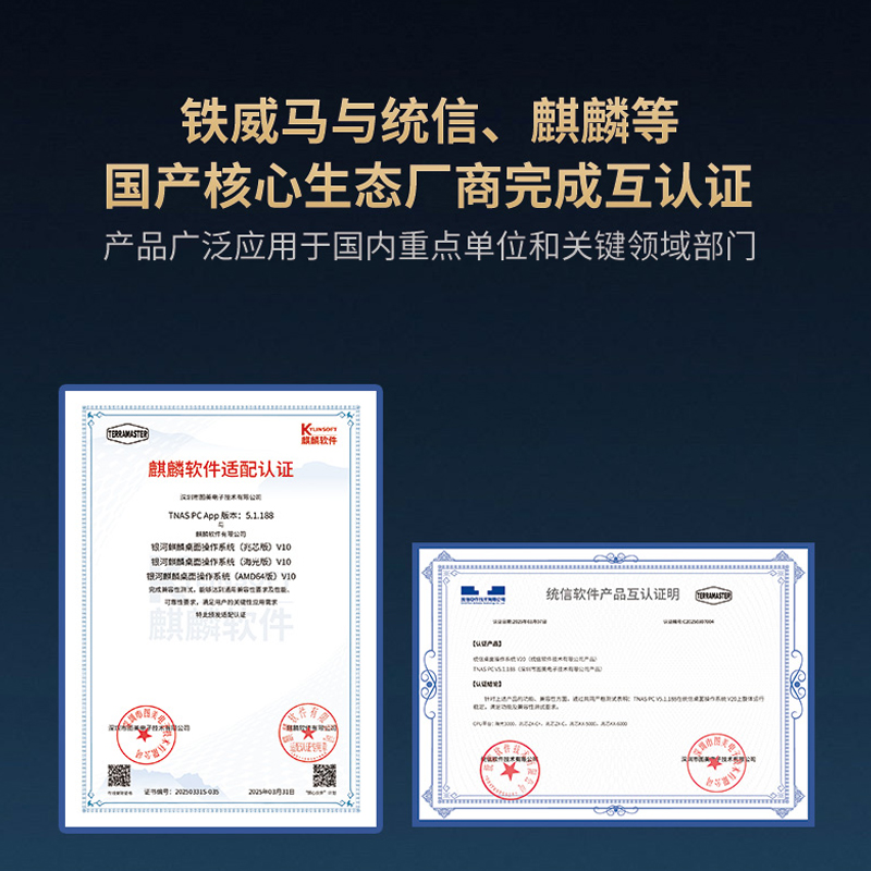 值得一提的是,鐵威馬積極響應國產(chǎn)化替代趨勢,與統(tǒng)信UOS、麒麟軟件等國產(chǎn)操作系統(tǒng)廠商完成產(chǎn)品互認證。這一合作使F6-424 Max能夠在統(tǒng)信UOS、麒麟KylinOS等國產(chǎn)系統(tǒng)中穩(wěn)定運行,滿足黨政機關、國有企業(yè)對數(shù)據(jù)存儲設備自主可控的要求,助力國產(chǎn)化生態(tài)建設。