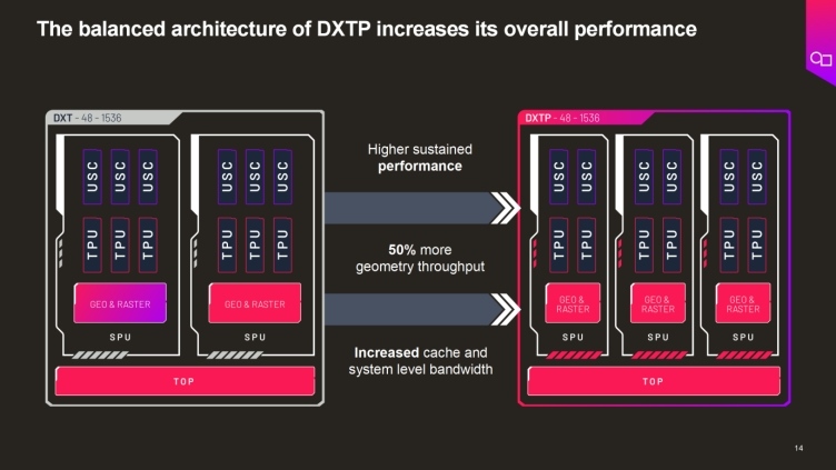 Imagination正在幫助客戶導入更加靈活的架構。以該公司不久前發(fā)布的Imagination DXTP GPU IP為例,它采用了先進的平衡架構,增加了緩存和系統(tǒng)級帶寬,實現(xiàn)了更高的持續(xù)性能,幾何吞吐量提高50%,不僅能夠輕松同時處理圖形和計算任務,而且其功率效率還較其前序產品提升了20%,為邊緣AI提供了理想的GPU平臺。DXTP GPU已經被全球知名科技公司采用,用于對AI 多數據類型處理、計算任務加速和本地內存的支持。
