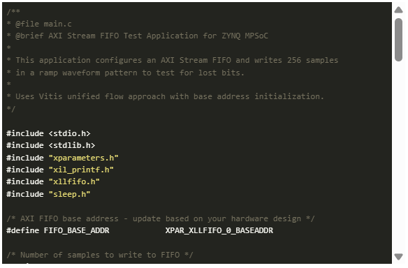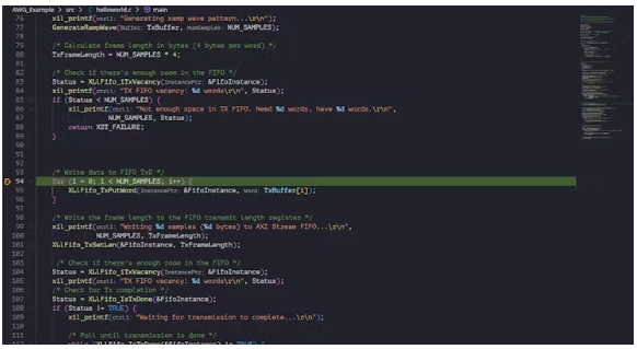 然后我們可以開發(fā)主應用軟件,對于本例,它將向DAC中寫入一個斜坡計數(shù)。這是一種通常在集成早期執(zhí)行的測試,以確保DAC沒有丟失的位或卡住的代碼。