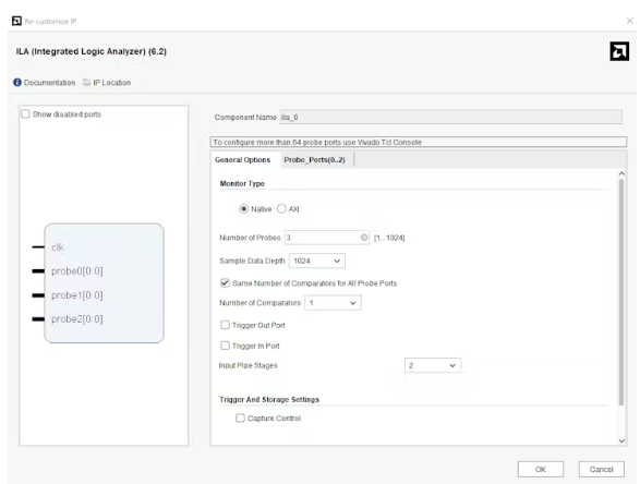 添加一個ILA;我們將用它來監(jiān)測設計中的一些簡單的邏輯信號。