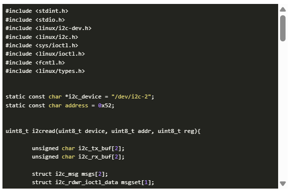 如果您愿意,您甚至可以使用I2Ctools在總線上讀寫。這可以使用命令sudo i2cget 3 0x3f 0x01來實現(xiàn)。這是從I2C總線3中獲得的,在設(shè)備地址0x3F處,寄存器0x01的內(nèi)容,這是溫度傳感器上的whoami寄存器。根據(jù)數(shù)據(jù)表,0xA0的值是正確的
