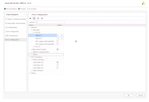 重新定制Zynq MPSoC,在PS/PL選項卡上禁用AXI HPM1 FPD接口