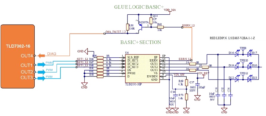 用一個(gè)TLD7002-16ES輸出來(lái)覆蓋外置LED驅(qū)動(dòng)器PWM和診斷