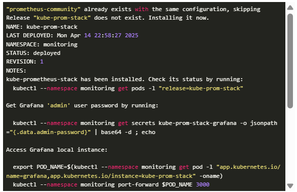 已成功安裝kube-prometheus-stack。將Grafana儀表板端口轉(zhuǎn)發(fā)到本地node-port: