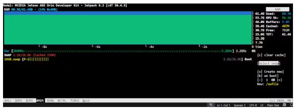 現(xiàn)在可以使用監(jiān)視工具(如jtop)驗(yàn)證內(nèi)存消耗情況。